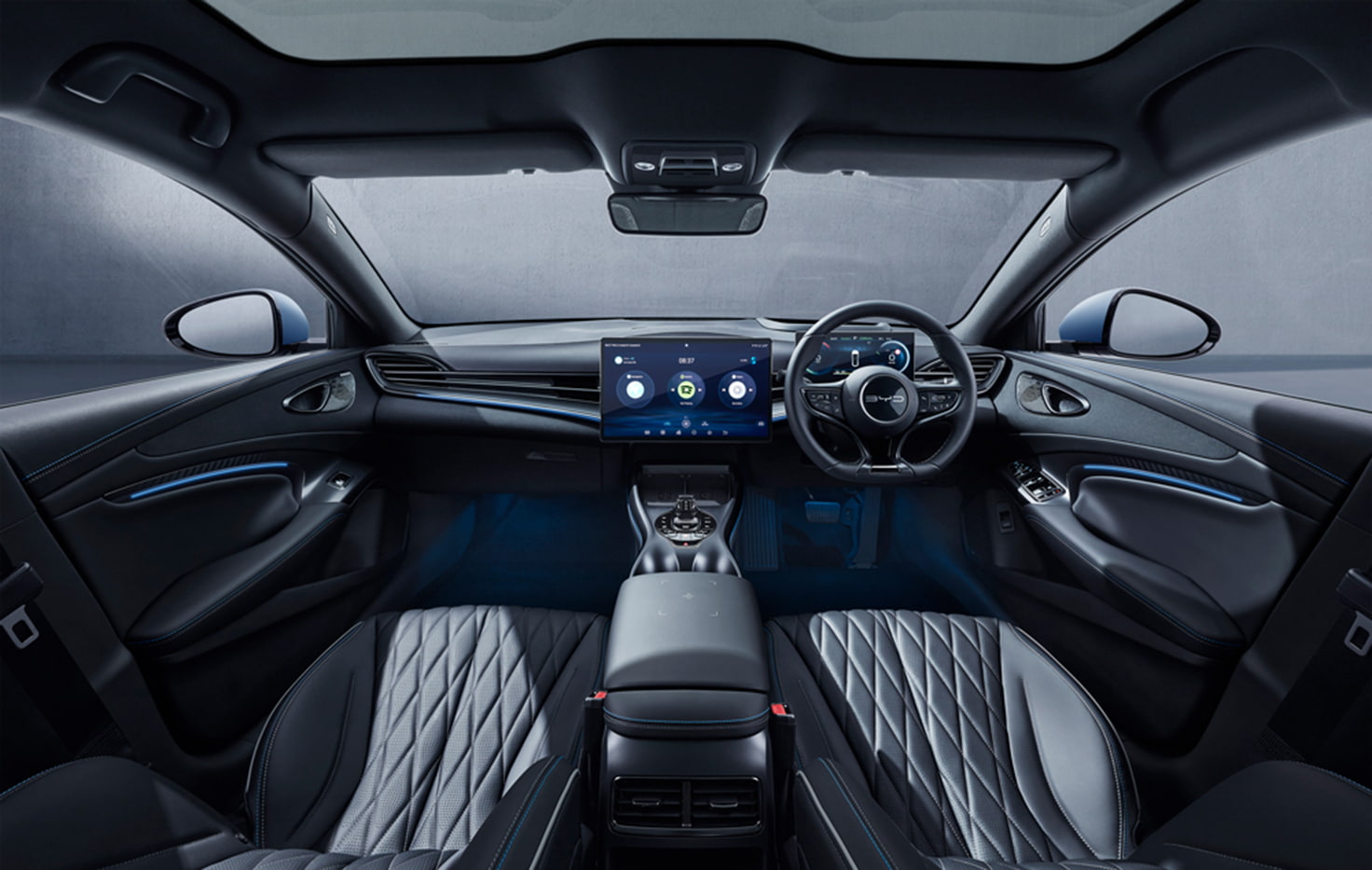 • *    Khoang nội thất xe điện BYD Seal rộng rãi, thoải mái và sang trọng