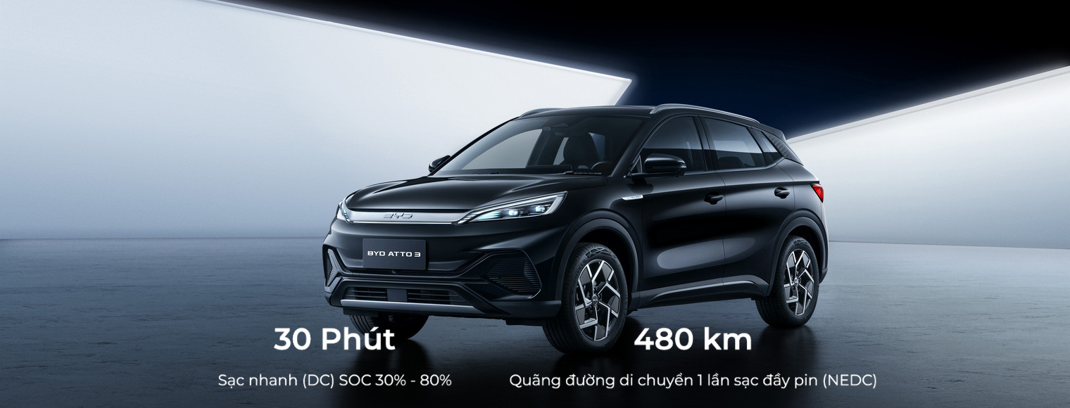 - * Quãng đường BYD Atto di chuyển xa, dao động từ 410 - 480km/lần sạc (tùy phiên bản)